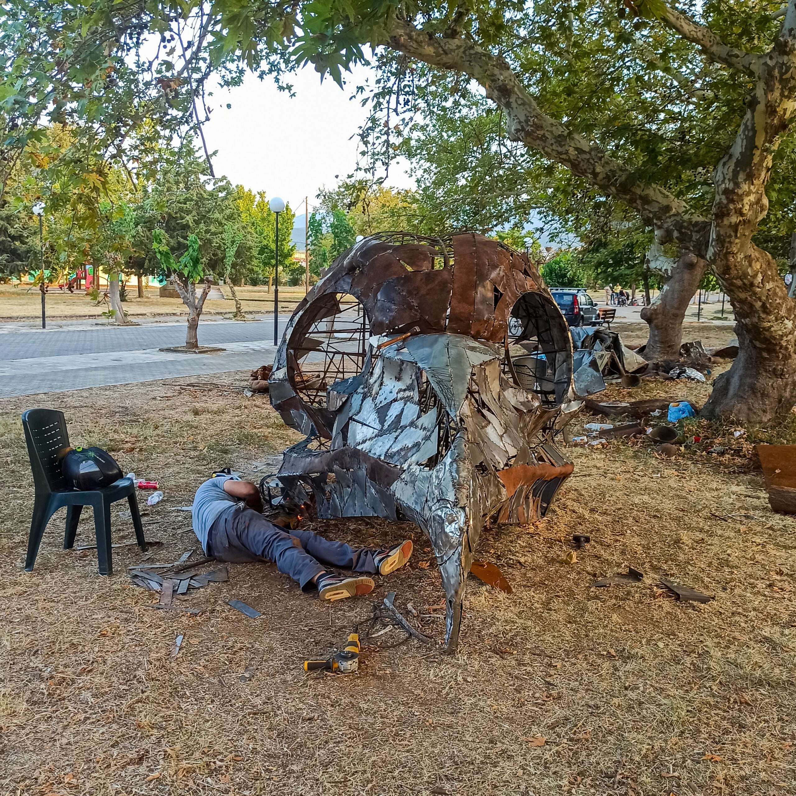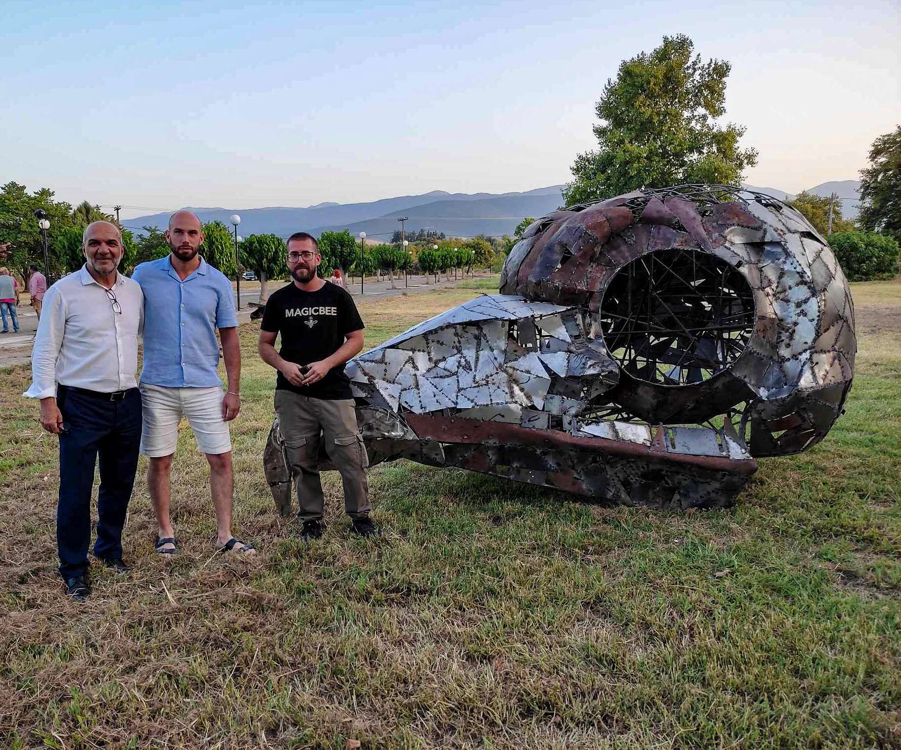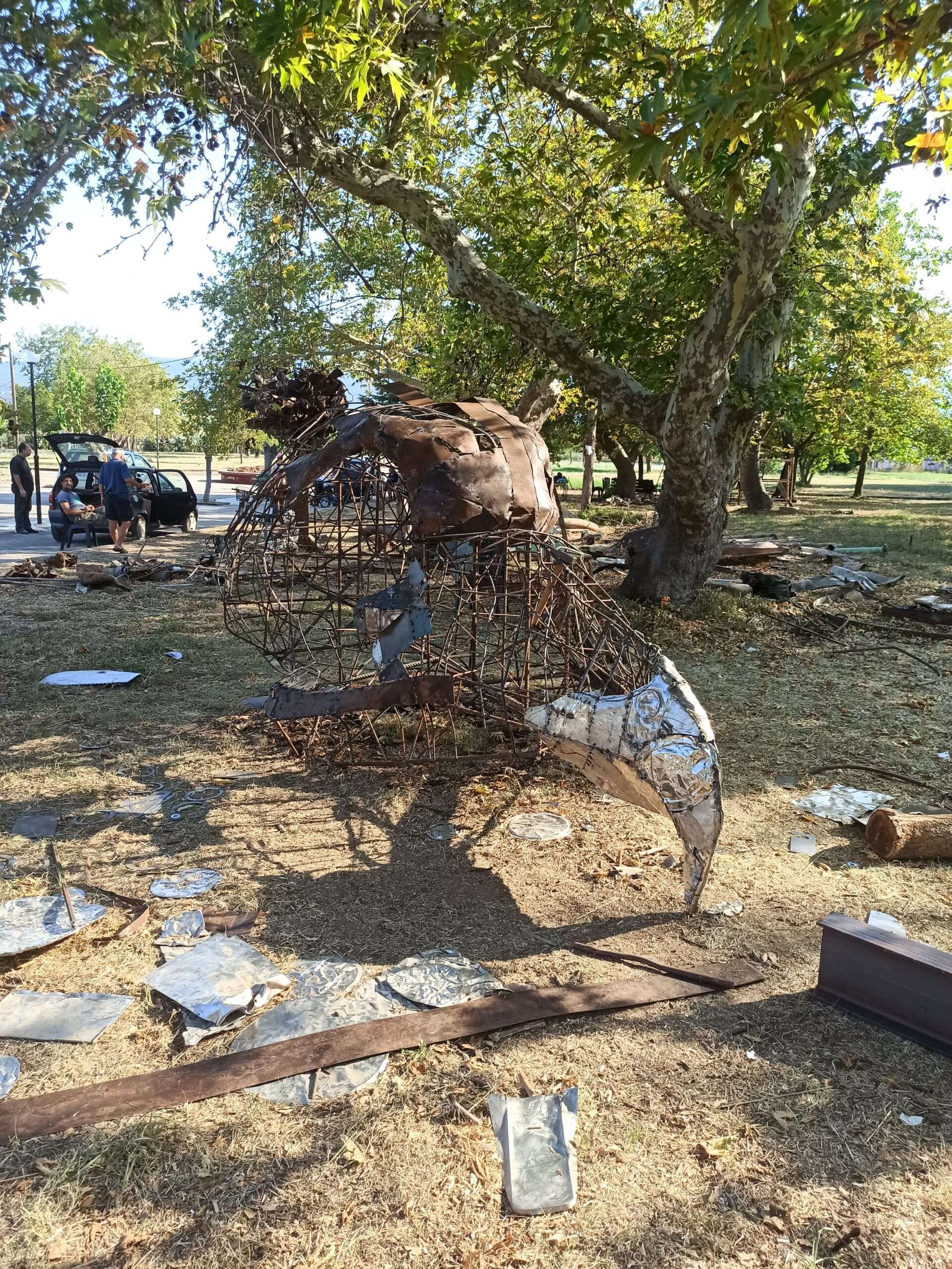 The 1st Symposium of Sculpture with Recyclable Materials has come to an end. I am grateful to have met these artists and especially Konstantinos Maros, with whom we created this work. I would like to thank Theodoros Papagiannis for his invitation and Apostolis Chasiotis, the organizer of the symposium.